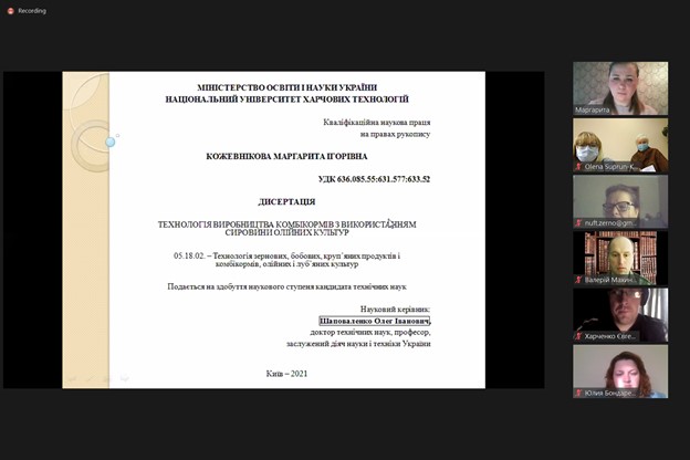 На кафедрі технології зберігання і переробки зерна наприкінці січня-початку лютого 2021 року відбулися міжкафедральні наукові семінари щодо попередніх розглядів дисертаційних робіт Родіона Рибчинського, Мирослави Кожевнікової та Маргарити Кожевнікової на здобуття наукових ступенів кандидата технічних наук. Науковий керівник робіт – д.т.н., професор Олег Шаповаленко.