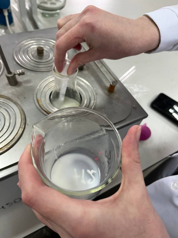 У рамках навчального процесу здобувачі третього курсу кафедри експертизи харчових продуктів опановують нову дисципліну – «Експертиза технологічних процесів», яку викладає доцентка Оксана Вашека. У межах курсу вони провели серію захопливих лабораторних робіт під керівництвом асистентки Анни Логінової, де досліджували особливості термічного оброблення молока. Під час занять третьокурсники вивчали особливості процесів пастеризації та пряження.