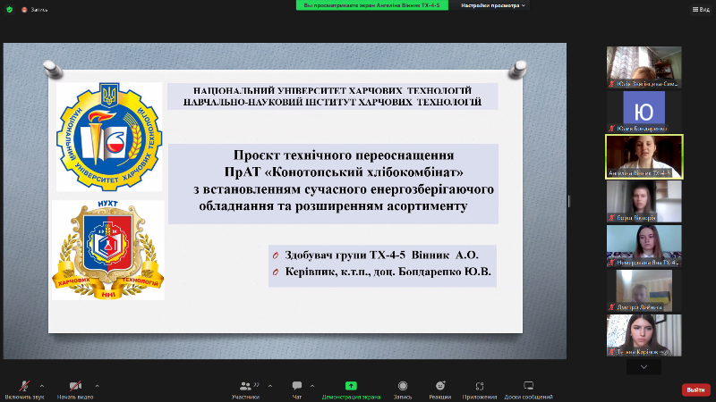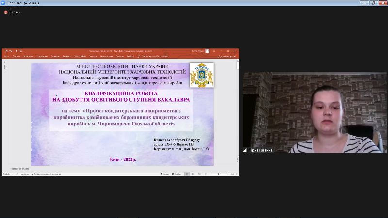 На кафедрі технології хлібопекарських і кондитерських виробів завершилися захисти кваліфікаційних робіт здобувачів вищої освіти денної форми навчання освітнього ступеня «Бакалавр» спеціальності 181 «Харчові технології», освітньо-професійної програми «Харчові технології та інженерія».