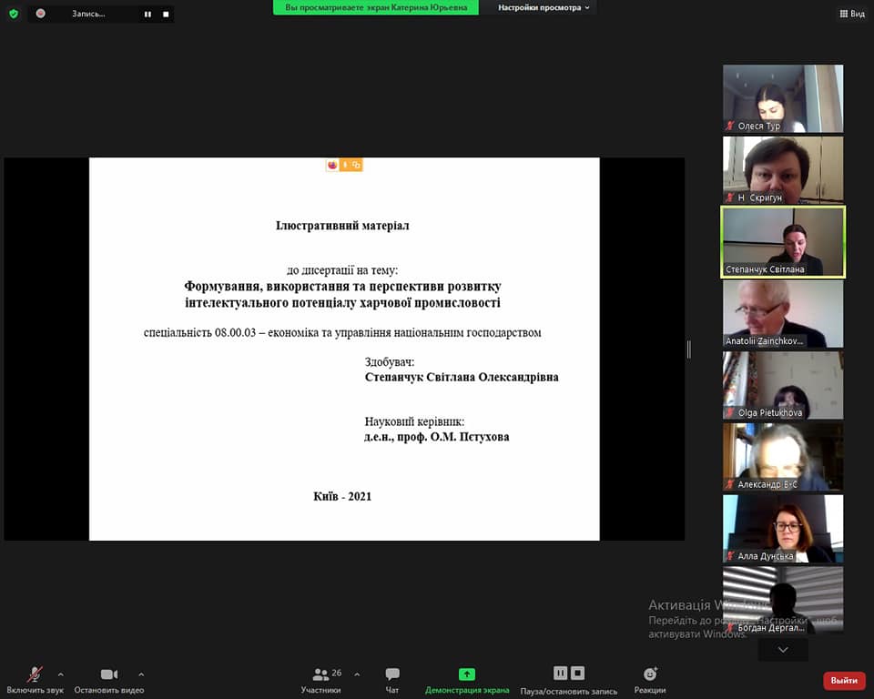 За результатами публічних захистів дисертацій, одностайними рішеннями членів спецради Д 26.058.01 Катерині Семененко був присуджений науковий ступінь кандидата економічних наук за спеціальністю 08.00.04 – економіка та управління підприємствами (за видами економічної діяльності) і Світлані Степанчук – кандидата економічних наук за спеціальністю 08.00.03 – економіка та управління національним господарством.