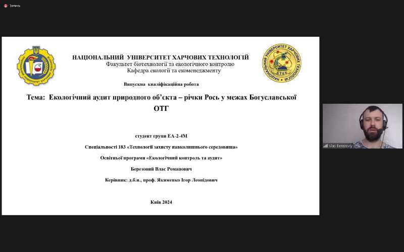 Випускники-магістри освітньо-професійних програм «Екологія та охорона навколишнього середовища» та «Екологічний контроль та аудит» Влас Березовий, Станіслав Усенко, Олександр Білик, Андрій Кізко, Вадим Поліщук, Дар’я Ярошевська, В’ячеслав Касатов та Людмила Дмитренко представили екзаменаційній комісії різнопланові кваліфікаційні роботи на актуальну тематику та успішно їх захистили.