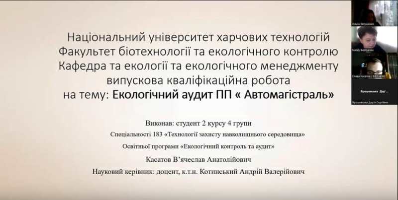 Особливо комісія відзначила кваліфікаційні роботи «Екологічний аудит природного об’єкта – річки Рось у межах Богуславської ОТГ» Власа Березового, «Використання відходів тваринництва для метанової ферментації: законодавчі аспекти та удосконалення технології» Станіслава Усенка та «Вплив фармацевтичного виробництва на прикладі АТ «Київмедпрепарат» на навколишнє середовище та шляхи екологічної модернізації даного виробництва» Олександра Білика. Вони були оцінені на «відмінно», а їх автори рекомендовані до отримання дипломів з відзнакою.