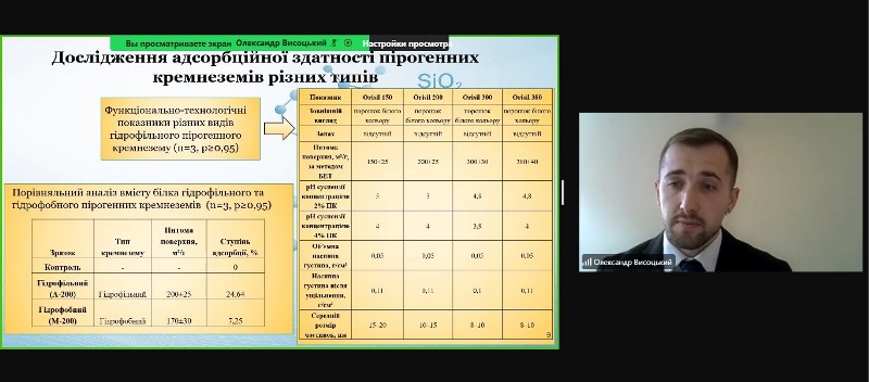 Тепло підтримала молодого науковця його наукова керівниця, професорка Оксана Кочубей-Литвиненко. Вона охарактеризувала дослідницькі, професійні й особисті якості здобувача, його здатність самостійно ретельно спланувати експеримент і підібрати комплекс методів, застосувати як загальноприйняті, так й спеціалізовані інструментальні методики з використанням сучасного аналітичного обладнання, сформулювати висновки та грамотно презентувати їх широкому загалу.