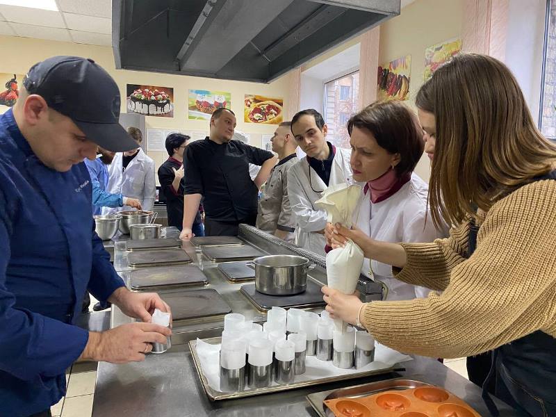 Шеф-кухар поділився тонкощами роботи з шоколадом і розповів про різні варіації рецептури, які можуть задовольнити смакові потреби найвибагливіших гостей. Завдяки практичній спрямованості майстер-класу магістранти мали можливість власноруч приготувати фондан та отримати практичні рекомендації від професіонала.
