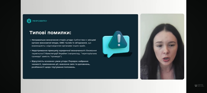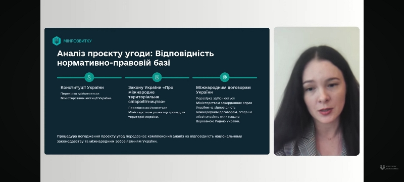 Захід був присвячений актуальним питанням укладення, оновлення та реєстрації міжнародних угод між муніципалітетами, зокрема у контексті співпраці з іноземними містами-партнерами. Учасники розглянули, як правильно оформити міжнародне партнерство згідно з чинними вимогами; що робити зі старими або неактивними угодами; як реєстрація угоди може стати запорукою для залучення державного фінансування; особливості звітності та нові ініціативи держави у цій сфері.