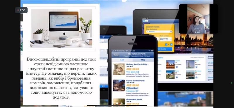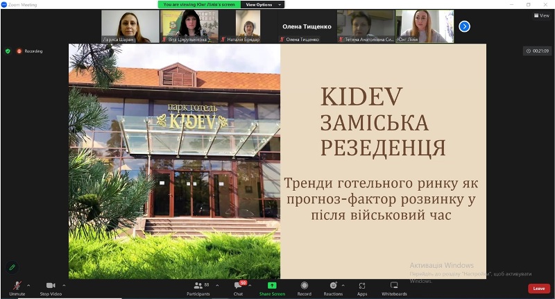 Наша випускниця, магістерка з готельно-ресторанної справи, успішна адміністраторка заміського готельного комплексу «KIDEV» Лілія Юнг познайомила присутніх із трендами готельного ринку як прогноз-фактором розвитку у післявоєнний час. Спікерка розповіла про особливості функціонування парк-готелю «KIDEV у період пандемії та у теперішній непростий воєнний час, волонтерську діяльність, зокрема наші здобувачі освіти мали змогу дізнатись про підтримку та допомогу готельних підприємств Збройним Силам України та всім, хто наближає нашу перемогу.