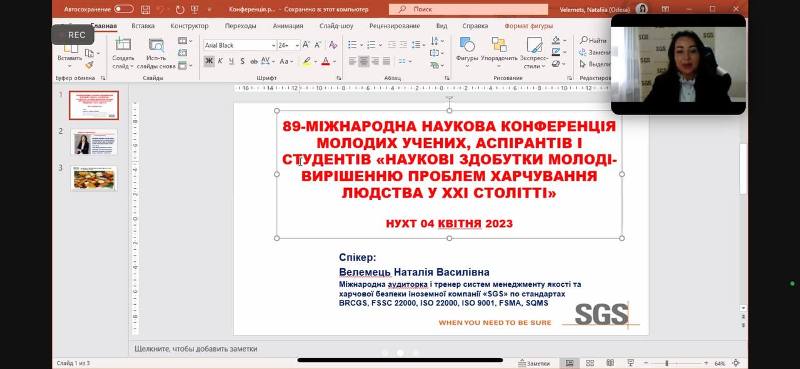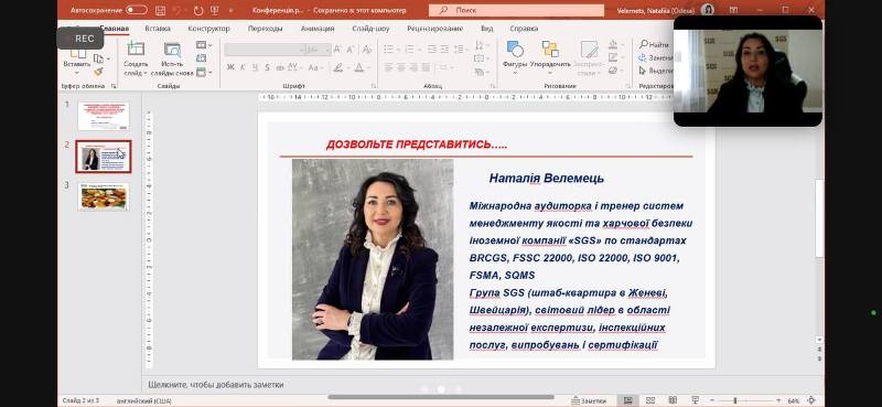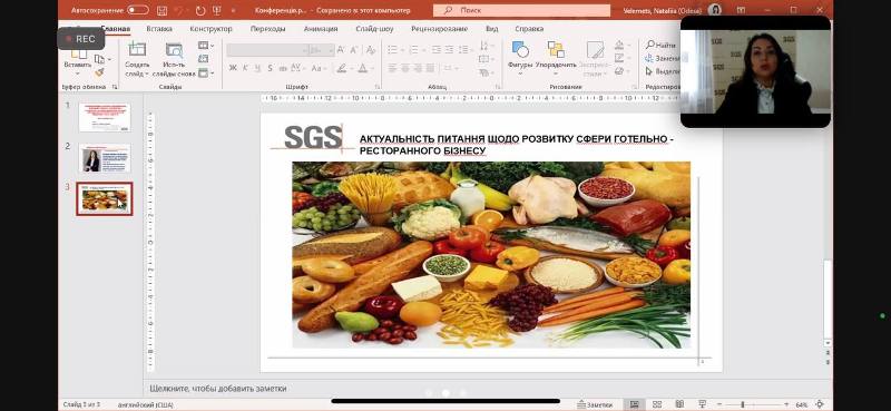 Серед запрошених гостей і доповідачів – стейкхолдерка, міжнародна аудиторка і тренерка систем менеджменту якості та харчової безпеки швейцарської компанії «SGS Україна» по стандартах BRCGS, FSSC 22000, ISO 22000, ISO 9001, FSMA, SQMS Наталія Велемець. Організатори роботи секції вдячні пані Наталії за актуальну інформацію щодо розвитку сфери готельно-ресторанного бізнесу, а також плідне партнерство і залученість в освітній процес задля підвищення якості підготовки фахівців за спеціальністю 241 «Готельно-ресторанна справ».