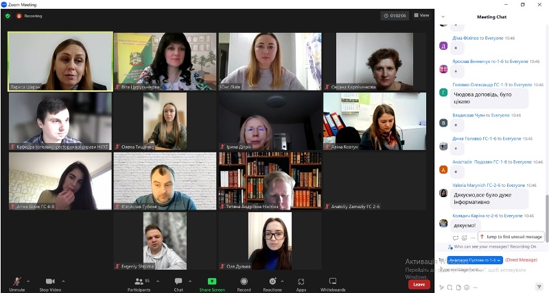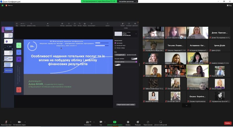 Гостей наукового заходу в освітньому діджитал-просторі привітали деканка факультету, гарантка освітньо-професійної програми «Готельно-ресторанна справа» Віта Цирульнікова та завідувачка кафедри готельно-ресторанної справи Лариса Шаран.