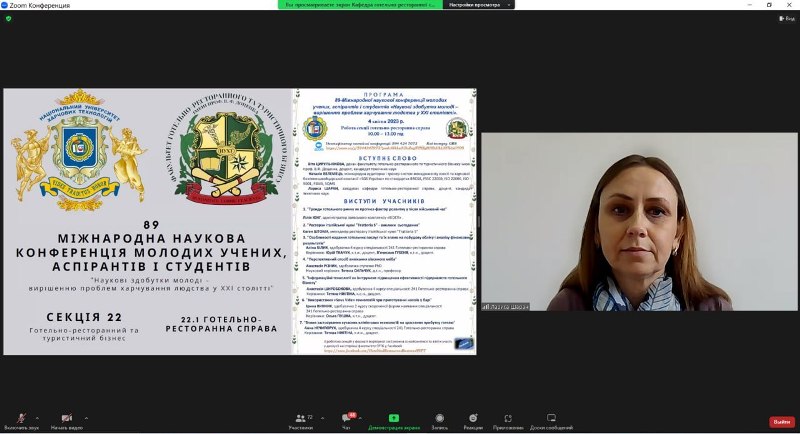 4 квітня 2023 р. у рамках 89-ї Міжнародної наукової конференції молодих учених, аспірантів і студентів «Наукові здобутки молоді – вирішенню проблем харчування людства у XXI столітті» на факультеті готельно-ресторанного та туристичного бізнесу імені проф. В. Ф. Доценка працювала секція «Готельно-ресторанна справа».