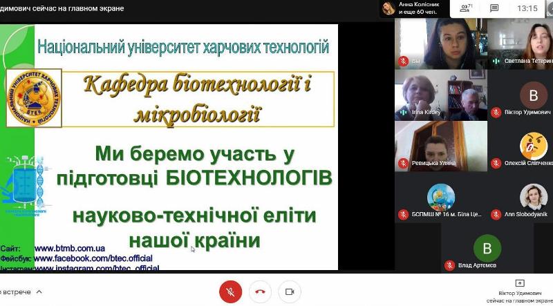Під час свого виступу викладачі ознайомили абітурієнтів зі спеціальностями, які пропонує наш університет і найдетальніше презентували спеціальність «Біотехнології та біоінженерія». Школярі ознайомилися з перевагами навчання на біотехнолога саме у НУХТ, матеріальним і технічним забезпеченням, перспективами працевлаштування. Не забули розповісти їм і про спортивне та культурно-масове життя студентів, яке і в умовах карантинних обмежень досить насичене і різноманітне. Світлана Тетеріна запросила присутніх відвідати сайти кафедри, факультету та університету і наголосила, що тут можна отримати відповіді на ті питання, які саме зараз найбільш гостро постають перед абітурієнтами.