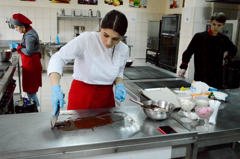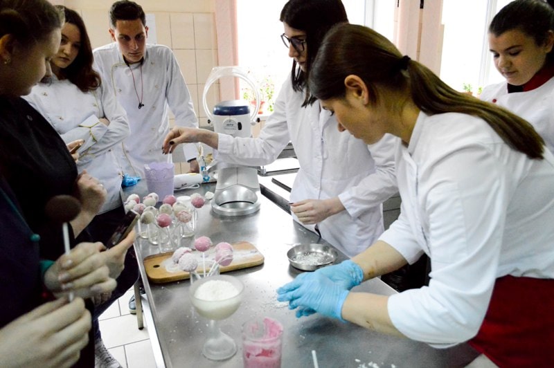 Слухачі були активно залучені до процесу приготування десертів, допомагали кондитеру на всіх технологічних етапах, покривали кейк-попси шоколадною глазур’ю і декорували різними кондитерськими прикрасами. Заняття проходило у приємній творчій атмосфері й закінчилося дегустацією неймовірно смачних десертів, які можуть стати ексклюзивом меню будь-якого закладу ресторанного господарства.
