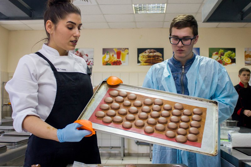 Ексклюзивний майстер-клас провела кондитер ресторану сучасної європейської кухні «The Park Kitchen» 5-зіркового готелю міжнародної мережі «Hilton Kyiv» і випускниця факультету Тетяна Лоза у технологічній лабораторії кафедри готельно-ресторанної справи. Гості дізналися кулінарні секрети справжніх вишуканих французьких макаронс, тонкощі технології та особливості їх приготування у сучасних популярних кондитерських.