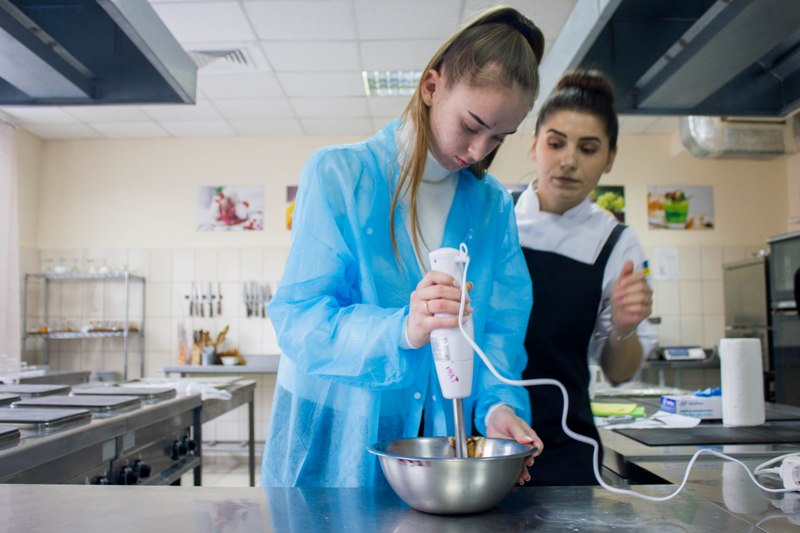 Майбутні вступники були активно залучені до процесу приготування десерту, допомагали кондитеру на всіх технологічних етапах – підготовки і випікання основи для макаронс із мигдального борошна, приготуванні шоколадного ганашу як начинки, формуванні й декоруванні кондитерських виробів. Школярі та студенти коледжів дізналися, як отримати рівну, без тріщин текстуру десерту, найоптимальніші режими випікання, особливості роботи з кондитерськими мішками для створення виробів ідеальної форми.