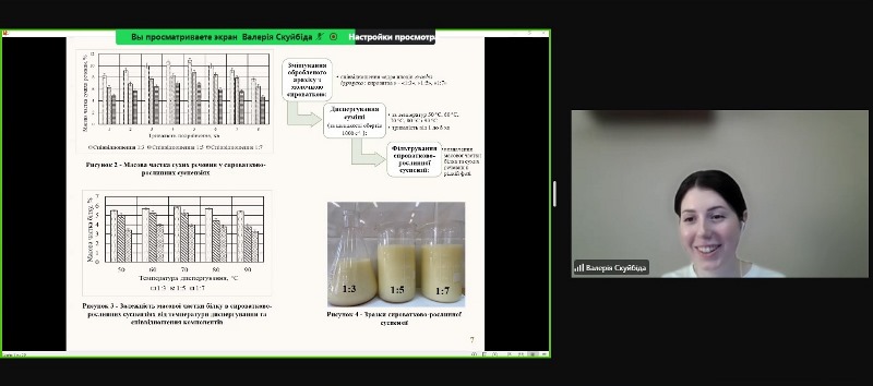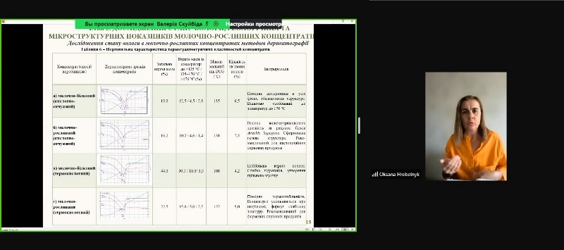Сьогодні у разовій спеціалізованій раді відбувся блискучий захист дисертації «Розроблення технології ферментованих молочно-рослинних продуктів» аспіранткою кафедри технології молока і молочних продуктів Валерією Скуйбідою на здобуття ступеня доктора філософії у галузі знань 18 «Виробництво та технології» за спеціальністю 181 «Харчові технології». Наукова керівниця здобувачки – к.т.н., доцентка кафедри Олена Онопрійчук.
