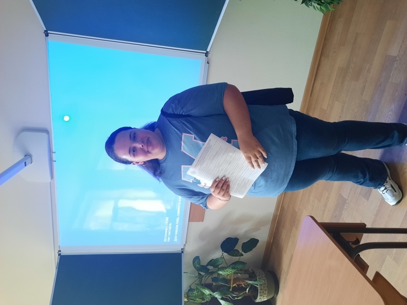 Олександра розповіла та надала детальну інформацію про Підготовче відділення та поділилась власними враженнями, щодо навчання в університеті. Також запропонувала активно долучатися до всіх заходів факультету ГРТБ імені проф. В.Ф. Доценка, адже вони є безкоштовними та надають можливість правильно обрати свою подальшу професію.