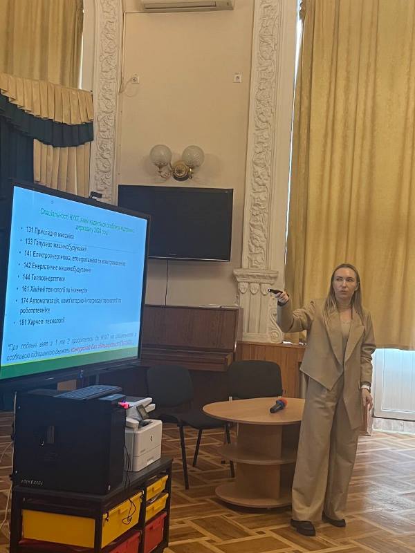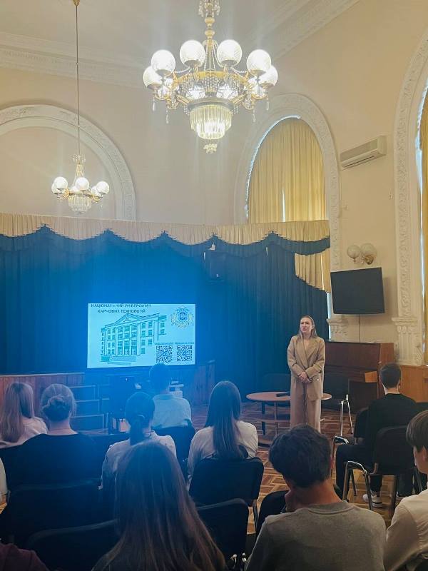 Заступниця декана акцентувала увагу гостей профорієнтаційного івенту на чатах НУХТ, Приймальної комісії, Вступники НУХТ-2024, сторінках у соціальних мережах факультету і університету, адже це допоможе майбутнім вступникам поринути в студентське життя і визначитися із закладом вищої освіти.