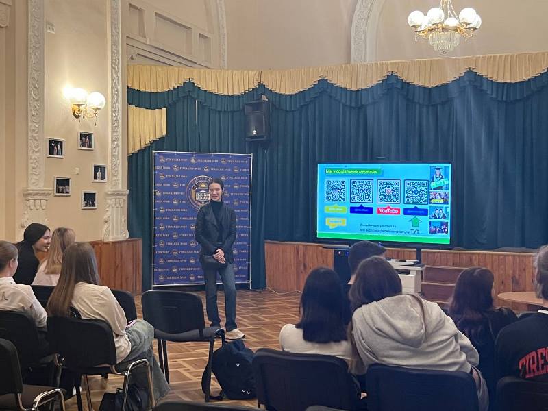 Дарія поділилася з учнями враженнями від навчання в англомовній групі і своєю активною позанавчальною діяльністю, наголосивши, що наш заклад вищої освіти створює можливості для навчальної, наукової, творчої реалізації.