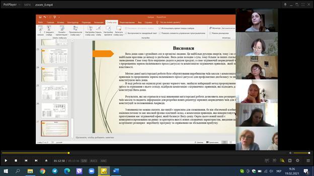 На кафедрі технології ресторанної і аюрведичної продукції 18 лютого за участю трьох випускових кафедр – технології хлібопекарських і кондитерських виробів, технології молока і молочних продуктів, технології м’яса і м’ясних продуктів відбувся міжкафедральний захист кваліфікаційних робіт зі спеціальності 181 «Харчові технології», освітньо-професійних програм «Технології аюрведичних харчових продуктів», «Технології зберігання, консервування та переробки м’яса», «Технології зберігання, консервування та переробки молока», «Технології органічних харчових продуктів».