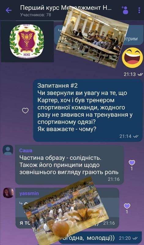 На розсуд вступників було винесено ряд дискусійних запитань: які менеджерські якості допомогли тренеру привести команду до перемоги, якою має бути мотивація, що додає менеджеру солідності й харизми та чому команда іноді недооцінює роль свого менеджера. А наприкінці найцікавіша дискусія: яка роль кожного гравця в команді, і в чому полягає сутність вдалої командної роботи?