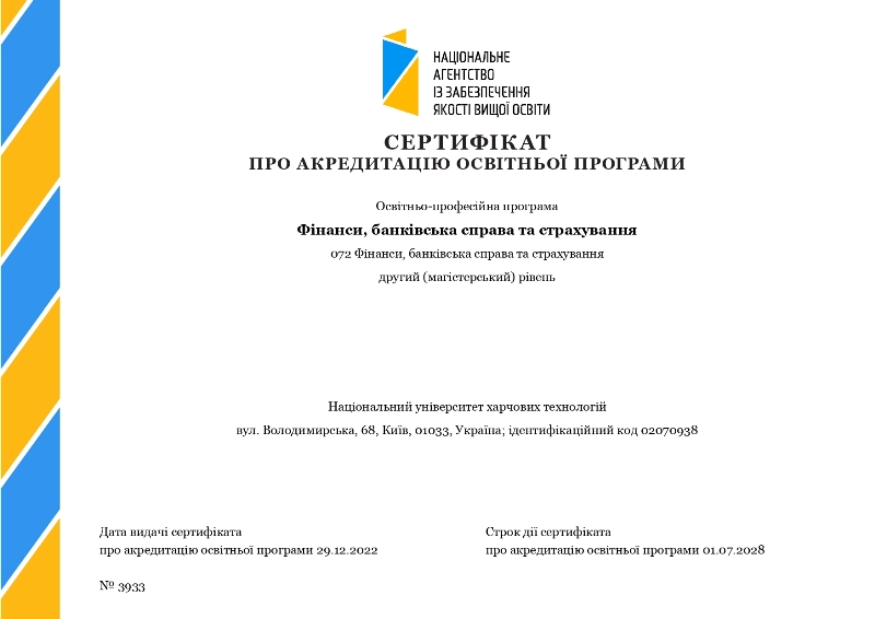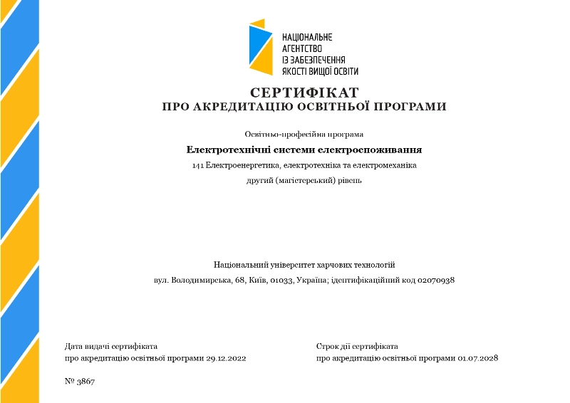 Приємний новорічний подарунок у вигляді сертифікатів про акредитацію отримали гаранти та робочі групи з розроблення освітніх програм Навчально-наукового інституту харчових технологій – «Технології продуктів бродіння і виноробства» (гарант – професор Віталій Прибильський, «Технології рослинних олій, жирових та косметичних продуктів» (гарантка – професорка Тамара Носенко), «Технології зберігання, консервування та переробки плодів і овочів» (гарант – професор Віталій Шутюк), «Технології зберігання, консервування та переробки молока» (гарантка – професорка Галина Поліщук), «Технології зберігання, консервування та переробки м'яса» (гарант – професор Василь Пасічний), «Технології харчових продуктів оздоровчого та профілактичного призначення» (гарантка – професорка Галина Сімахіна), «Технології харчових концентрованих продуктів на основі фруктово-овочевої сировини, чаю, кави та прянощів» (гарант – професор Олександр Бессараб), Навчально-наукового інженерно-технічного інституту ім. академіка І.С. Гулого – «Електротехнічні системи електроспоживання» (гарант – доцент Юрій Чорний), «Інжиніринг поліграфічних та пакувальних виробництв» (гарантка – доцентка Олена Чепелюк), «Інжиніринг фармацевтичних та біотехнологічних виробництв» (гарант – доцент Олексій Губеня), «Інжиніринг харчових виробництв» (гарант – професор Микола Якимчук) та Навчально-наукового інституту економіки і управління – «Менеджмент персоналу» (гарантка – доцентка Ліана Мазник), «Облік і аудит» (гарантка – доцентка Людмила Духновська) і «Фінанси, банківська справа та страхування» (гарантка – професорка Лада Шірінян).