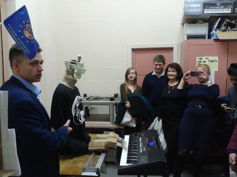 На кафедрі автоматизації та комп'ютерних технологій систем управління доцент Ярослав Смітюх провів лабораторіями та розповів про актуальність професії у всьому світі, а доцент кафедри Віктор Сідлецький продемонстрував гостям талановитого робота і гості на власні очі побачили, як за допомогою комп’ютерної програми робот відтворює музикальний твір.