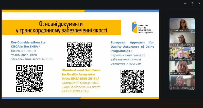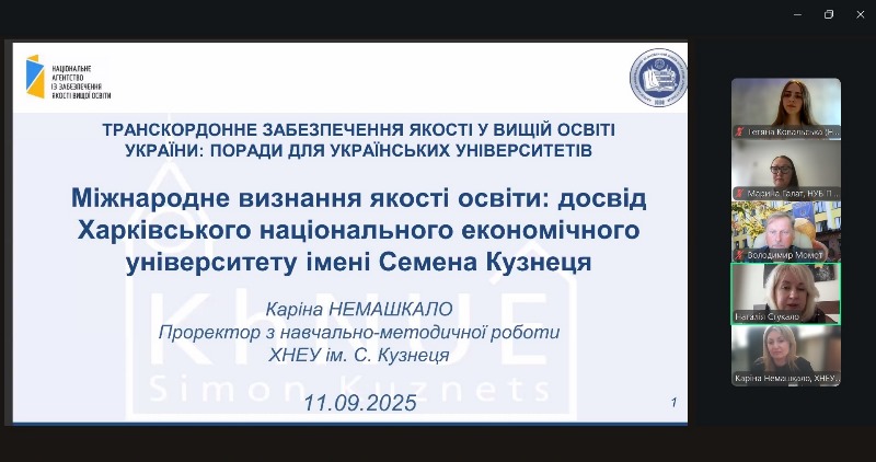 У межах заходу представники Харківського національного економічного університету імені Семена Кузнеця, Університету імені Альфреда Нобеля, Національного університету біоресурсів і природокористування України поділилися кращими практиками транскордонного забезпечення якості, зокрема досвідом проходження акредитації освітніх програм у міжнародних агентствах і надали практичні поради щодо реалізації принципів транскордонного забезпечення якості вищої освіти в Україні.