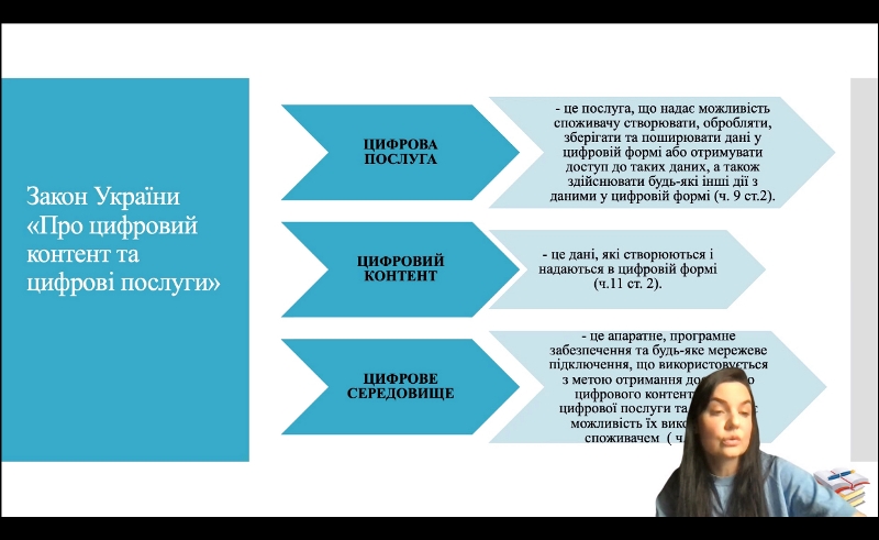 Лекторка відзначила, що цивільне право є однією з найбільш важливих і фундаментальних галузей права в Україні. Воно регулює широке коло відносин між фізичними та юридичними особами, охоплюючи майнові, особисті немайнові відносини, договірні зобов'язання та багато іншого. Цивільне право України ґрунтується на принципах рівності учасників, свободи договору та недопущення свавільного втручання в приватні справи.
