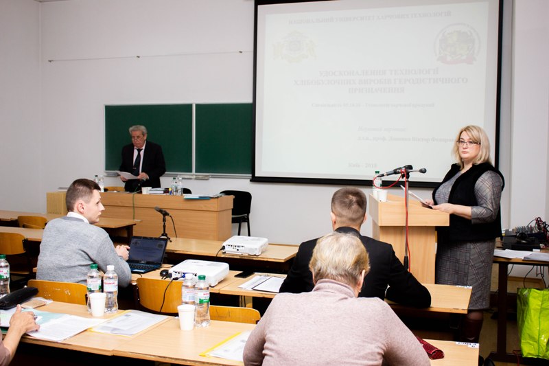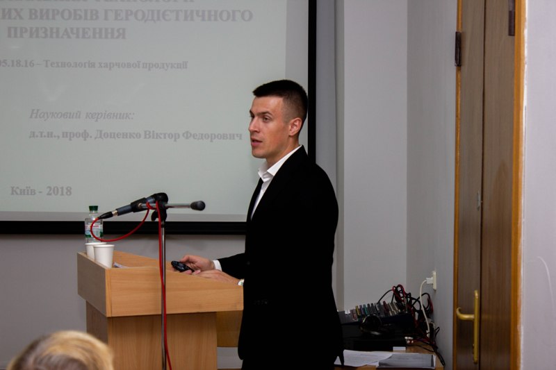 Старший викладач Олег Бортнічук представив спеціалізованій вченій раді дисертаційну роботу «Удосконалення технології хлібобулочних виробів геродієтичного призначення» (науковий керівник – професор, д.т.н. Віктор Доценко). Офіційні опоненти – завідувач кафедри технології харчування Сумського національного аграрного університету, професор, д.т.н. Федір Перцевий і доцент кафедри технології ресторанного і оздоровчого харчування Одеської національної академії харчових технологій, к.т.н. Алла Салавеліс. Наукові дослідження здобувача Олега Бортнічука були присвячені вивченню спільного використання пшеничних висівок, сухої молочної сироватки та вітаміну D3 у хлібопеченні з метою збагачення виробів фізіологічно-функціональними інгредієнтами та розширення асортименту геродієтичних хлібобулочних виробів.