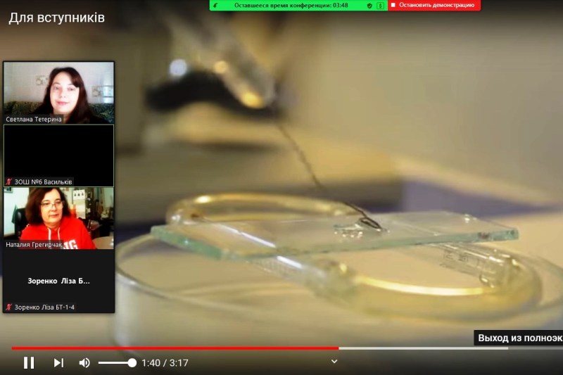 Тож, напередодні шкільних осінніх канікул відбулася ще одна онлайн-зустріч представників профорієнтаційної команди факультету біотехнології та екологічного контролю (БТЕК), цього разу з учнями 11-го класу Васильківської загальноосвітньої школи І-ІІІ ступенів №6. Ця зустріч була особлива, адже деканка факультету Наталія Грегірчак підготувала для школярів сюрприз – пряму трансляцію з університету, справжню екскурсію в реальному часі!