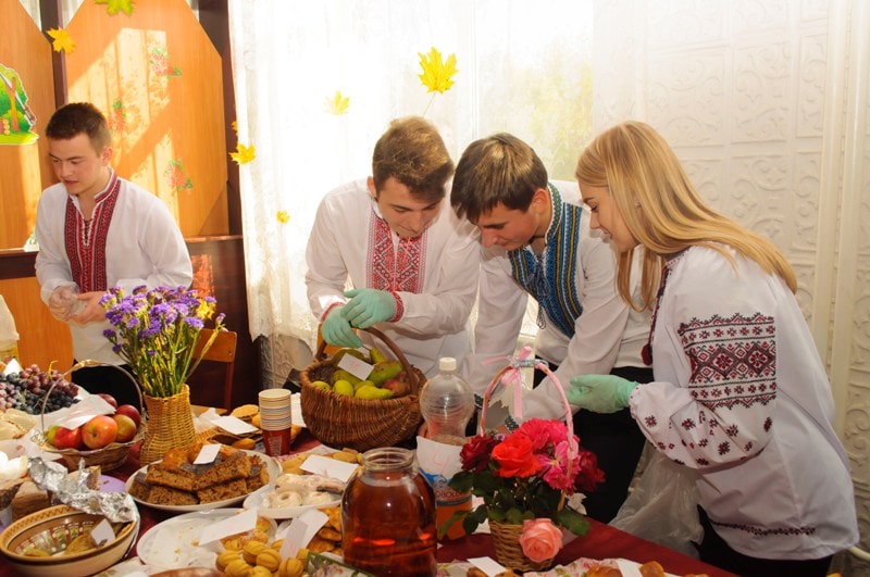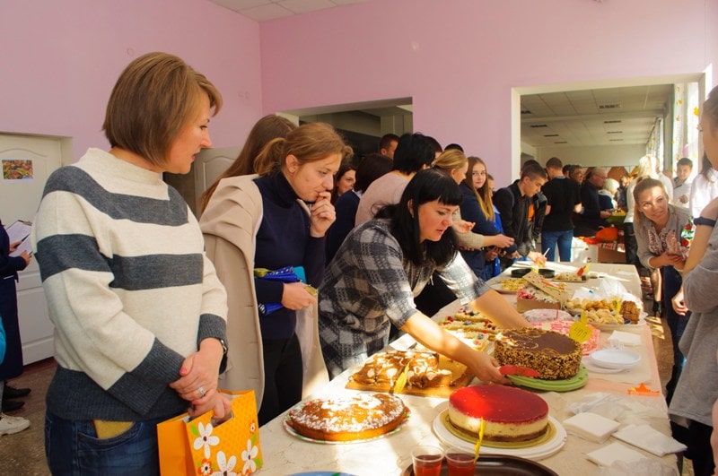 Запах пряної випічки, вишиті рушники та традиційне вбрання тільки додали колоритності святу. Кожний зі представників відділень підійшов до справи креативно, дивували своїм оздобленням та композиціями із фруктів та овочів, різними смачними стравами. Найбільше продавалося, звичайно, солодощів – торти, пироги, тістечка, печиво найрізноманітніших видів і форм, желе, сирники, пиріжки. Хоча були в асортименті й традиційні страви – вареники, деруни, канапки у найнеймовірніших варіаціях та оздобленні і навіть піца. Справжніми шедеврами на ярмарку стали торти власноруч випечені студентами.