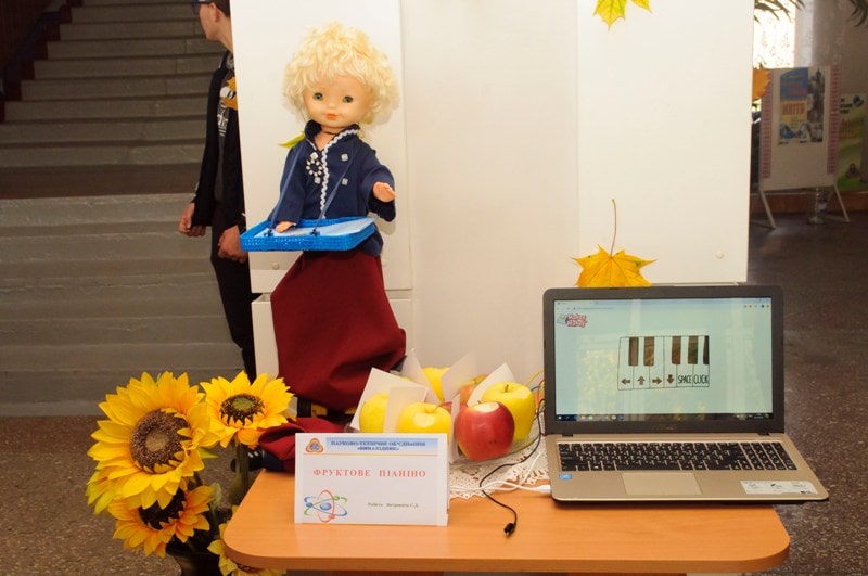 А ще, на осінньому базарчику ніхто без зацікавленості не міг пройти повз «фруктове піаніно». За допомогою спеціально розробленої програми встановленої на ноутбуці та провідника-щупальця, зрізані вершечки яблук при контакті з подушечками пальців видавали на монітор музичні акорди, створюючи довільну мелодію.