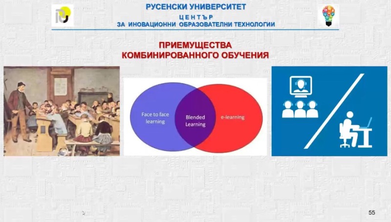 Досвід поєднання класичної та онлайн-освіти представив провідний фахівець у галузі інноваційних методів навчання, директор Центру інноваційних освітніх технологій Русенського університету, професор Ангел Смрикаров. Лектор наголосив на раціональному співвідношенні різних освітніх форматів для різних освітніх напрямів і на прикладі власної презентації та доповіді показав, як зацікавити аудиторію та мотивувати її до онлайн-навчання.