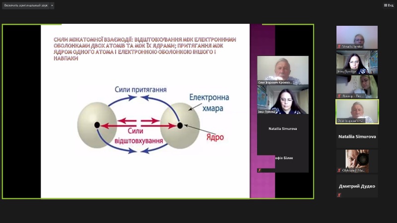 Яскрава змістовна мультимедійна презентація давала можливість детально уявити механізми утворення йонного, ковалентного, водневого зв’язків і ретельно законспектувати представлений матеріал. Студенти дізналися, яким чином розвиток теорій Косселя та Льюїса привів до сучасного уявлення про утворення молекул. Також викладач детально зупинився на основних характеристиках хімічного зв’язку (енергії, напрямленості, насиченості тощо) та їх впливі на властивості хімічних структур.