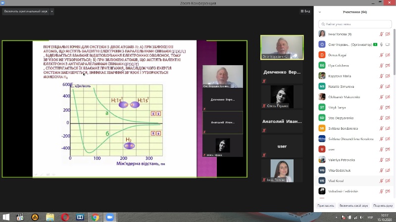 Незважаючи на перехід університету на дистанційну форму навчального процесу, ранком 15 жовтня 2020 року відбулось онлайн лекційне заняття з дисципліни «Загальна та неорганічна хімія» для здобувачів першого курсу (груп ТІ-1-1, ТІ-1-2, ТІ-1-3) Навчально-наукового інституту харчових технологій, спеціальності 181 «Харчові технології».
