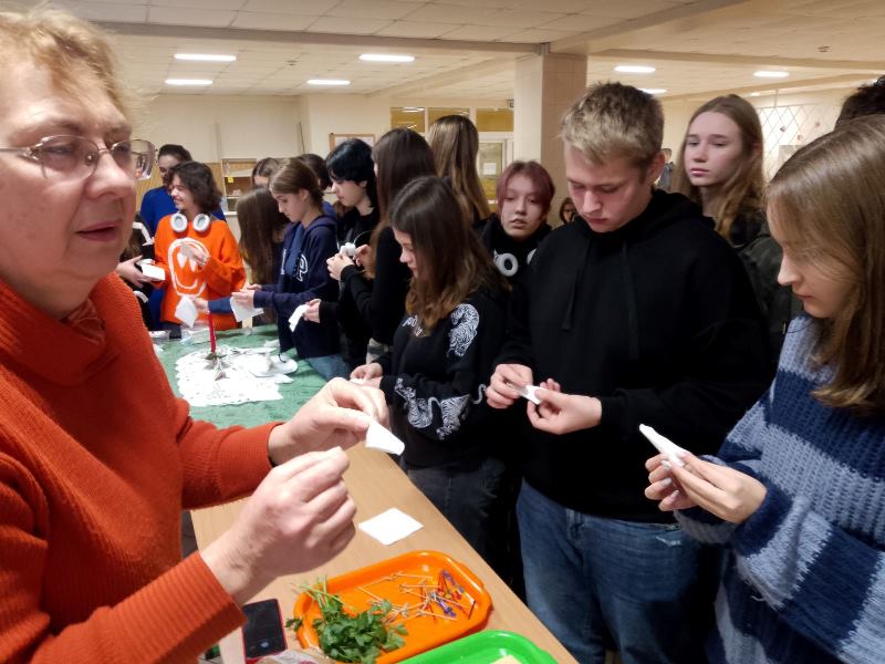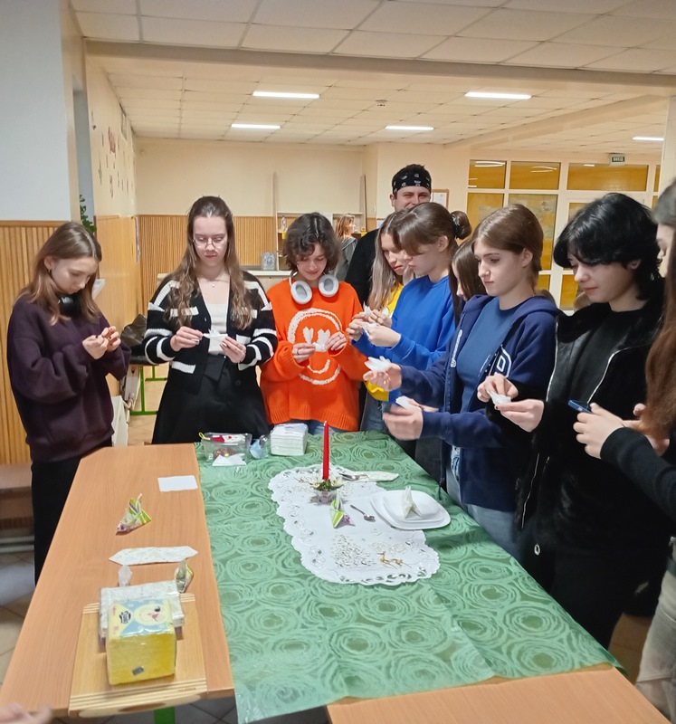 Доцентка кафедри Ірина Корецька навела перелік освітніх програм бакалаврського рівня здобуття освіти і розповіла про особливості вступу у 2025 році. Також вона разом зі здобувачкою групи ХЧ-3-2 Оленою Шепелевою надала поради і провела майстер-клас зі сервірування святкового новорічного столу. Зокрема ліцеїсти отримали практичні навички, тренуючи різні способи складання серветок, адже саме завдяки серветці сервірування столу набуває вишуканості і закінченості.