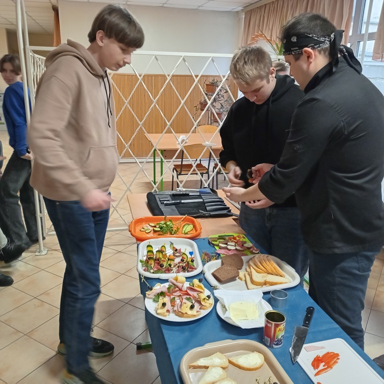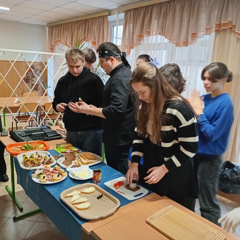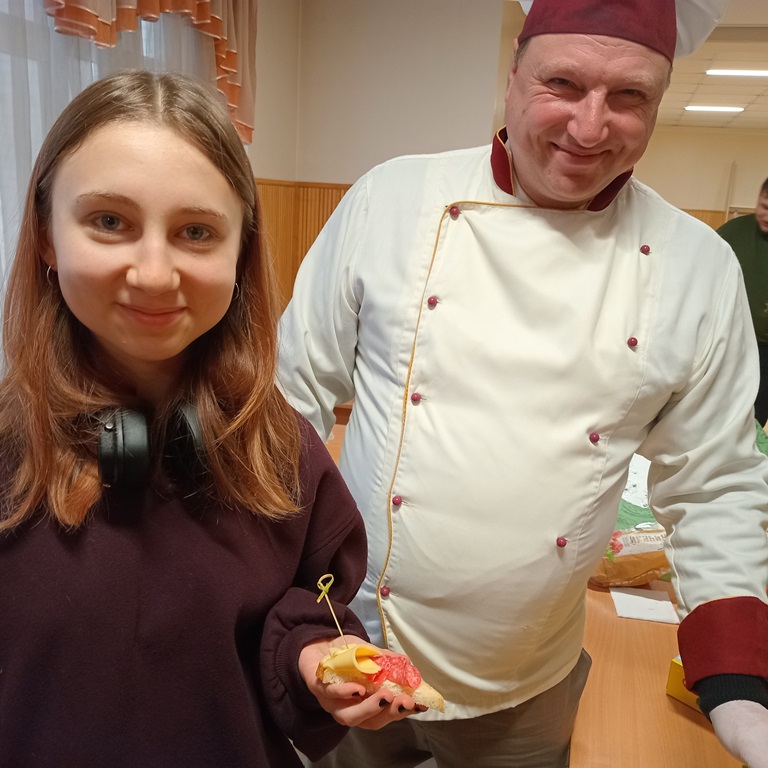 Неймовірні емоції викликав інтерактив від старшого викладача Володимира Польовика та його «правої руки», здобувача групи ХЧ-3-2 Дмитра Фастаковського, під керівництвом яких десятикласники опанували безліч варіантів приготування святкової закуски – канапок.
