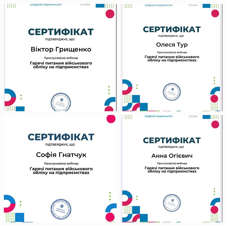 Здобувачі освіти разом зі спікером детально розглянули основні аспекти військового обліку на підприємствах. Для ефективного його ведення підприємствам рекомендовано: дотримуватися вимог нормативних документів, таких як Конституція України, Закони України «Про військовий обов’язок і військову службу», «Про мобілізаційну підготовку та мобілізацію»; проводити регулярні перевірки облікової документації; активно співпрацювати з територіальними центрами комплектування та соціальної підтримки.