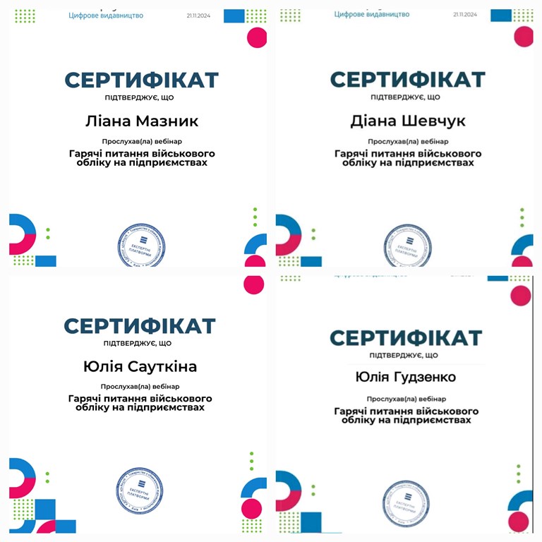 21 листопада здобувачі другого курсу освітньо-професійної програми «Менеджмент персоналу» Віктор Грищенко, Софія Гнатчук, Анна Огієвич, Юлія Сауткіна, Діана Шевчук, Юлія Гудзенко разом із викладачками кафедри економіки праці та менеджменту, доцентками Олесею Тур і Ліаною Мазник взяли участь у онлайн-вебінарі «Гарячі питання військового обліку на підприємствах» від експерта з військового обліку, підполковника у відставці Валерія Власиневича.