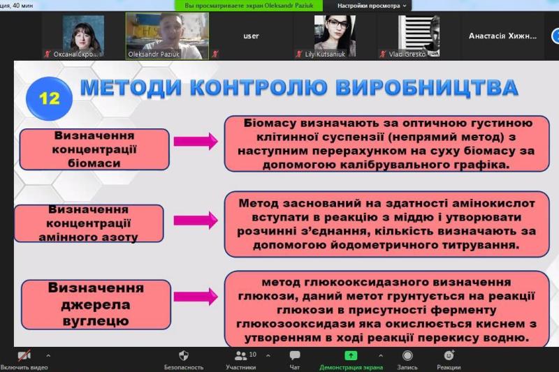 27 і 28 січня у форматі Zoom-відеоконференції відбувся попередній захист кваліфікаційних магістерських робіт здобувачів денної та заочної форм навчання кафедри біотехнології і мікробіології.