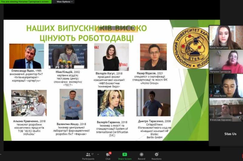 З умовами прийому на навчання для здобуття вищої освіти у 2021 році майбутніх вступників познайомила деканка факультету біотехнології та екологічного контролю – Наталія Грегірчак. Вона наголосила, що підготовку фахівців-біотехнологів здійснюють досвідчені викладачі, які мають великий практичний досвід у галузі. Було також зазначено, що матеріально-технічна база в НУХТ одна з найкращих в Україні і є одним із факторів, що забезпечують підготовку висококваліфікованих фахівців, конкурентоздатних на ринку праці.