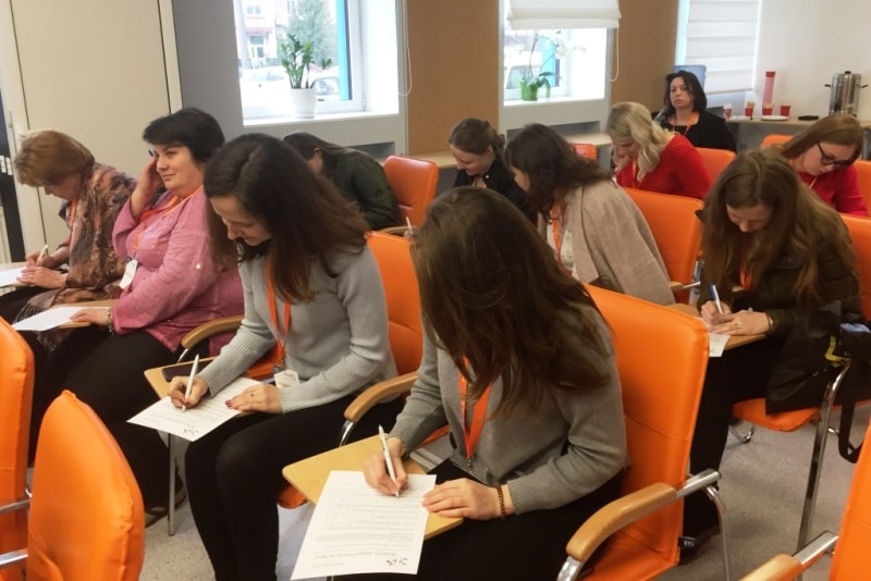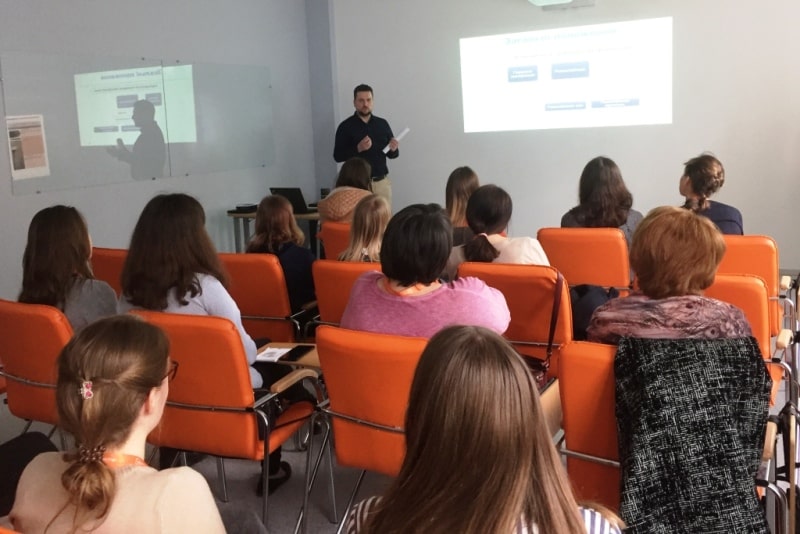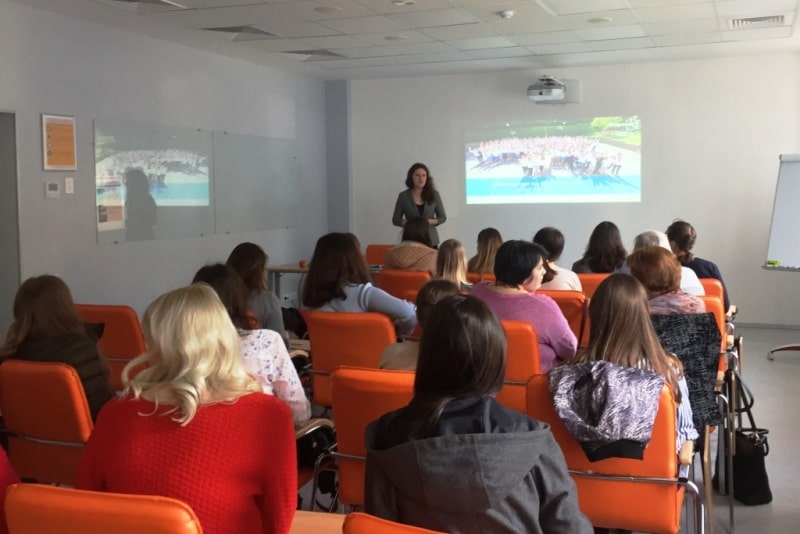 Після невеличкої перерви на каву-брейк, провідний фахівець відділу управління персоналом Леся Домбровська розповіла про історію створення, сьогодення та напрямки розвитку ПАТ «Фармак». Вона наголосила, що підприємство підтримує проекти, спрямовані на забезпечення ефективного використання природних ресурсів, охорону довкілля та гарантування екологічної безпеки.