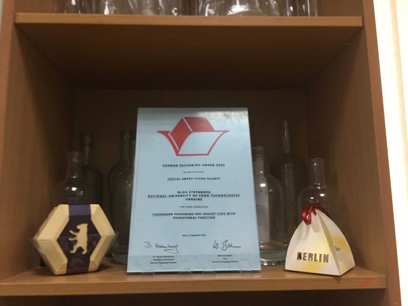 Здобутки кафедри машин і апаратів харчових та фармацевтичних виробництв поповнилися престижною нагородою міжнародного конкурсу на кращу розробку у пакувальній галузі German Packaging Award 2022 у номінації Young Talents, яку одержала магістрантка Ольга Степанова.