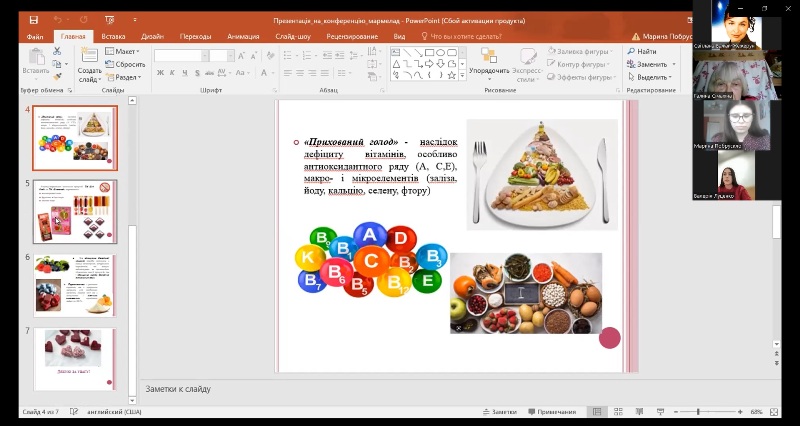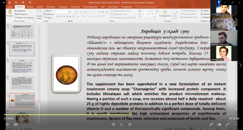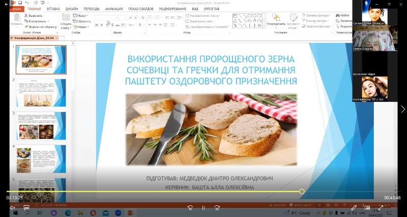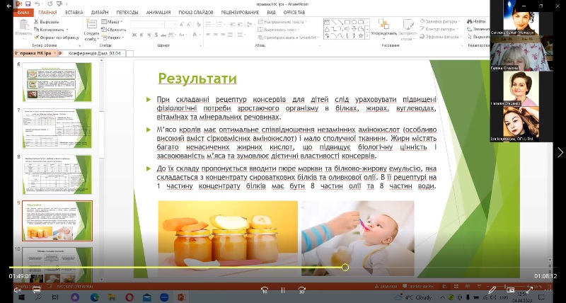 Надзвичайно схвально сприйняла аудиторія доповіді науковців Азербайджанського державного економічного університету – Мехрібан Юсифової «Effect of spelt flour on the quality of bakery products», Летафет Гулієвої «Functional meat products with using non-traditional vegetable raw materials», Лали Бадалової «Preparation of sugar cookies with the addition of flax seed powder as a functional food». Глибоке осмислення матеріалу разом із чудовою англійською мовою привернуло увагу усіх слухачів. Доповідачам було поставлено багато запитань, і тут на допомогу прийшла професорка кафедри іноземних мов професійного спрямування Наталія Науменко – у синхронному перекладі з української на англійську і навпаки.