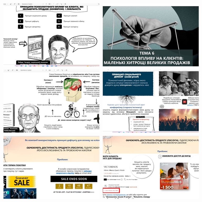 Здобувачі ознайомилися з методами психологічного впливу на клієнтів для збільшення продажів. У яскравій презентації були детально розглянуті хитрощі, які допомагають сформувати позитивне враження у клієнта та підштовхнути його до покупки: принцип дефіциту; принцип соціального доказу; принцип авторитету, принцип симпатії, принцип взаємного обміну, принцип контрасту, колір і дизайн, історія бренду та інші.