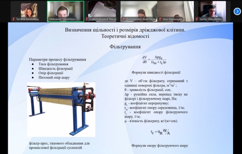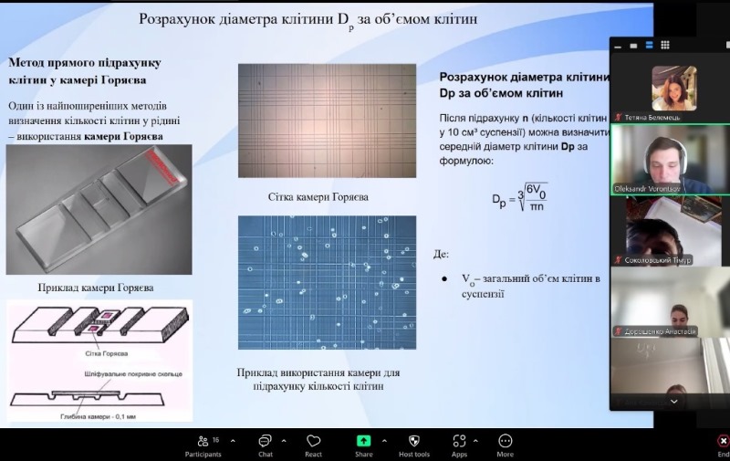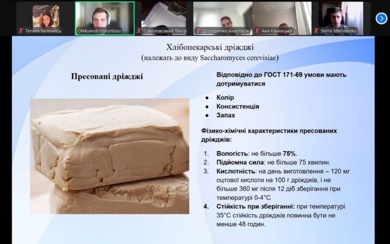 Здобувачі освіти ознайомилися з фізико-хімічними характеристиками пресованих дріжджів, включаючи їхню вологість, кислотність, стійкість при зберіганні та підйомну силу; основним методами визначення розміру та щільності дріжджових клітин, зокрема за допомогою закону Ньютона та закону Стокса; центрифугуванням, як способом розділення клітин у суспензії та методами підрахунку клітин із використанням камери Горяєва; методами аналізу ферментативної активності дріжджів, такими як оцінювання зимазної та мальтазної активностей; методами визначення вологості продуктів за допомогою приладу Чижової та інших технологічних підходів.