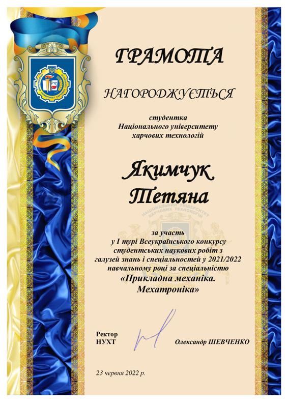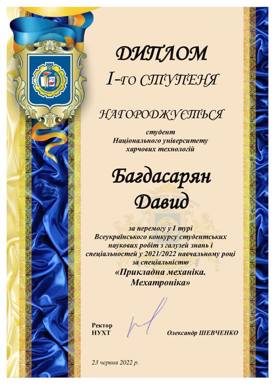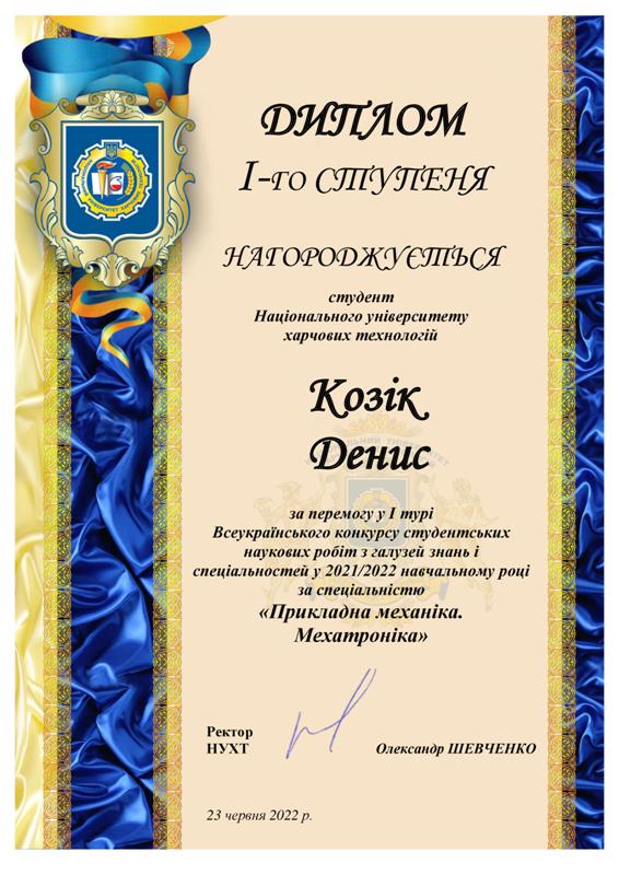 Завершився Всеукраїнський конкурс студентських наукових робіт на кращу роботу серед студентів, магістрантів вищих навчальних закладів ІІІ-ІV рівнів акредитації з галузі знань «Прикладна механіка. Мехатронiка», що проводився відповідно до наказу МОН №1179 від 5 листопада 2021 року.