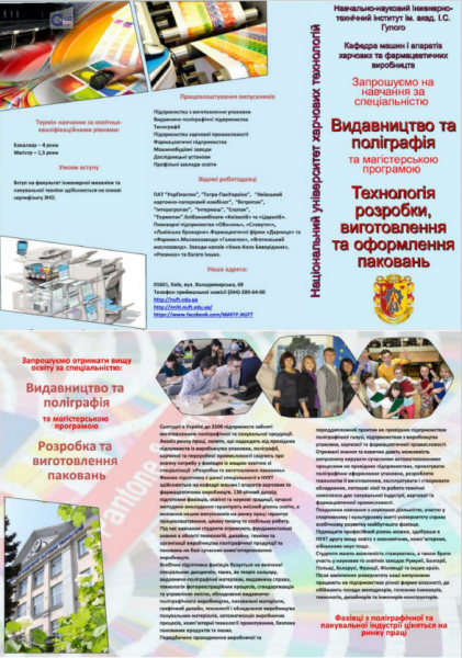 Викладачі кафедри машин і апаратів харчових та фармацевтичних виробництв завжди прагнуть зробити процес навчання корисним, наочним і цікавим. Тож викладач дисципліни, доцент Ігор Литовченко запропонував провести цикл додрукарського опрацювання інформації на реальному життєвому прикладі – підготовці до друку найпоширенішого періодичного видання – журналу. Адже саме в цьому випадку не обійтися без кожного класичного етапу підготовки оригінал-макету: розроблення дизайну обкладинки, дизайну статей, написання безпосередньо текстів, літературного редагування, коректури, верстання, спуску полос.