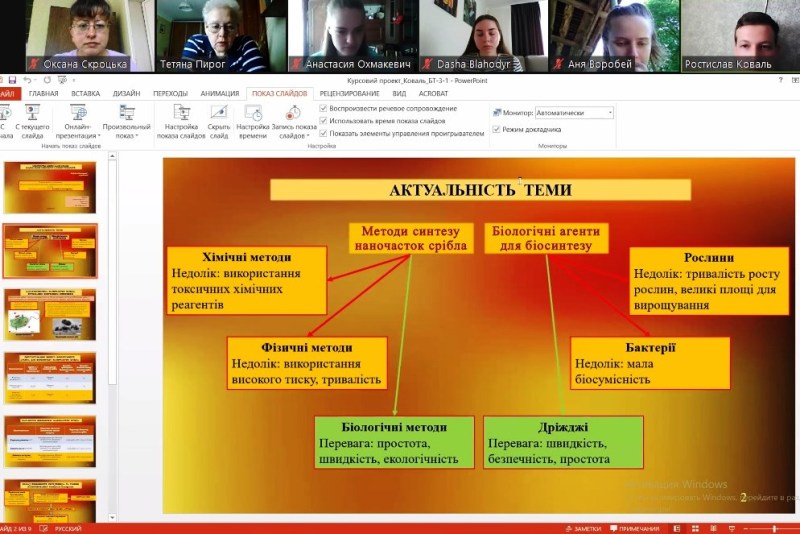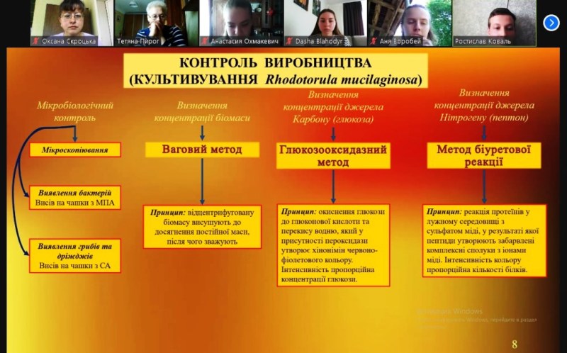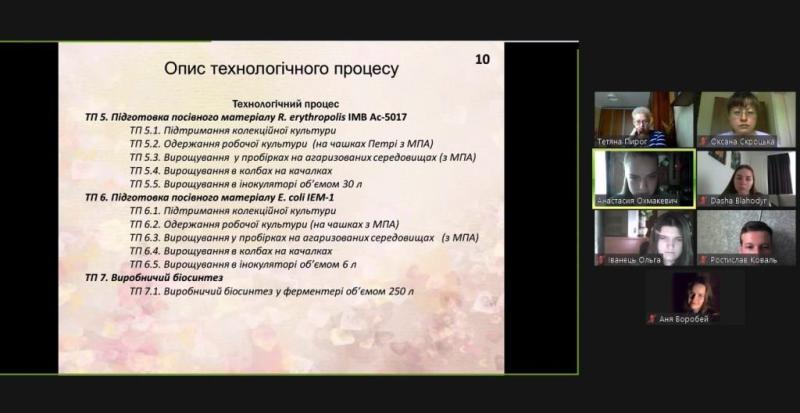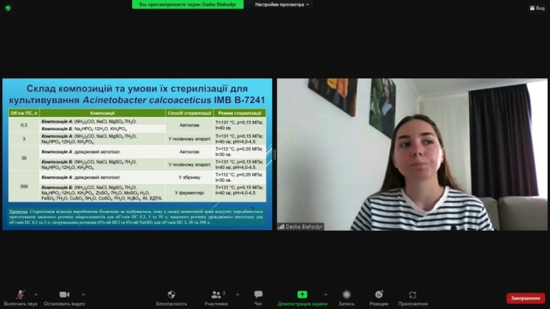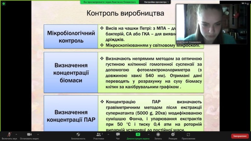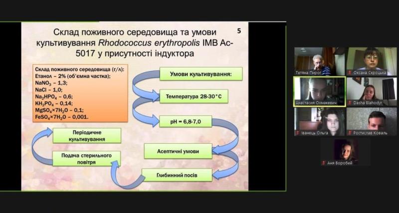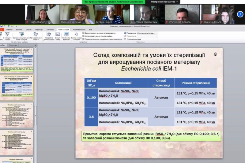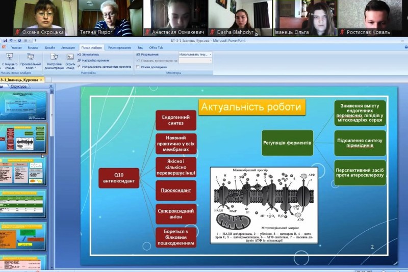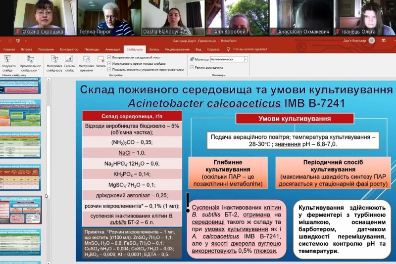 У зум-форматі працювали комісії, до складу яких увійшли провідні викладачі, зокрема професорка Тетяна Пирог і доцентка Оксана Скроцька. Вони уважно слухали доповіді, а потім задавали питання здобувачам. Також в дискусіях брали участь і самі здобувачі, які теж задали велику кількість питання доповідачам. При цьому автори робіт давали ґрунтовні відповіді та захищали свої розробки.