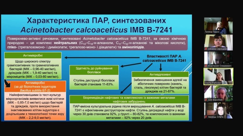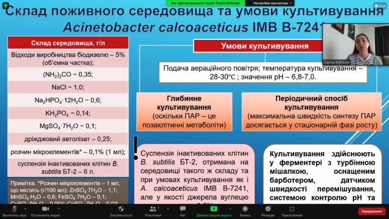 Як завжди тематика курсових робіт була різноплановою, цікавою, і актуальною. Здобувачі обирали оптимальний продуцент вітаміноподібної сполуки убіхінону (його ще називають коферментом Q₁₀), шукали антибактеріальні агенти у боротьбі з фітопатогенними бактеріями, розглядали біосинтез поверхнево-активних речовин Rhodococcus erythropolis IMB Ac-5017 за наявності Escherichia coli IEM-1 тощо.