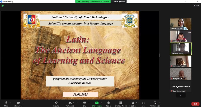 На кафедрі іноземних мов професійного спрямування відбулося перше у 2023 році відкрите заняття. Доцентка Галина Лук’янець разом зі здобувачами-аспірантами збірної групи Навчально-наукового інженерно-технічного інституту ім. акад. І.С. Гулого опрацювали нову, але вкрай важливу для здобувачів освіти тему «Latin Vocabulary. Pronunciation and Formulas».